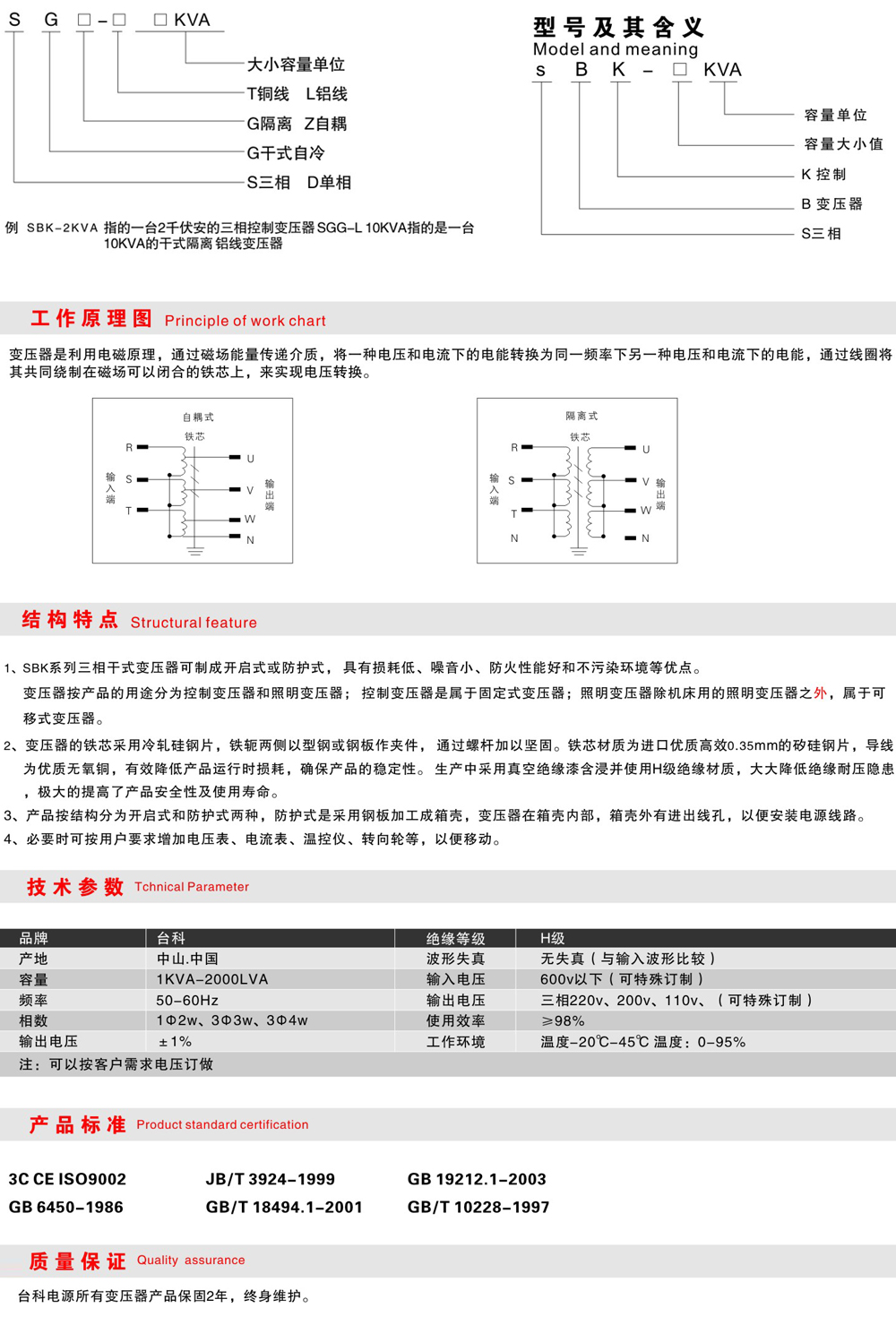 SBK/SG系列三相干式變壓器經(jīng)過臺科公司多年的研發(fā)和制造銷售經(jīng)驗,將變壓器從原材料、工藝都已經(jīng)做了的權(quán)威分析和優(yōu)化,使 我們生產(chǎn)的變壓器比同行業(yè)的噪音低、損耗低、壓降小、效率更高更穩(wěn)定。本系列產(chǎn)品適用于交流50Hz~ 60Hz,電壓660V以下的電路中, 廣泛用于進口精密機械設(shè)備、多軸自動車床、彈簧機械、注塑機械、機械電子設(shè)備、醫(yī)療設(shè)備、整流裝置,照明等。